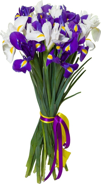 Великолепный букет из прекрасных синих и белых ирисов - это символ веры и надежды, чистоты и искренности, нежности, дружбы и серьезности намерений, поэтому этот букет очень подходит для подарка девушке или женщине в самом начале ваших романтических отношений, а также этот букет будет уместен для презента родным и близким людям по поводу какого-либо праздника и торжества.